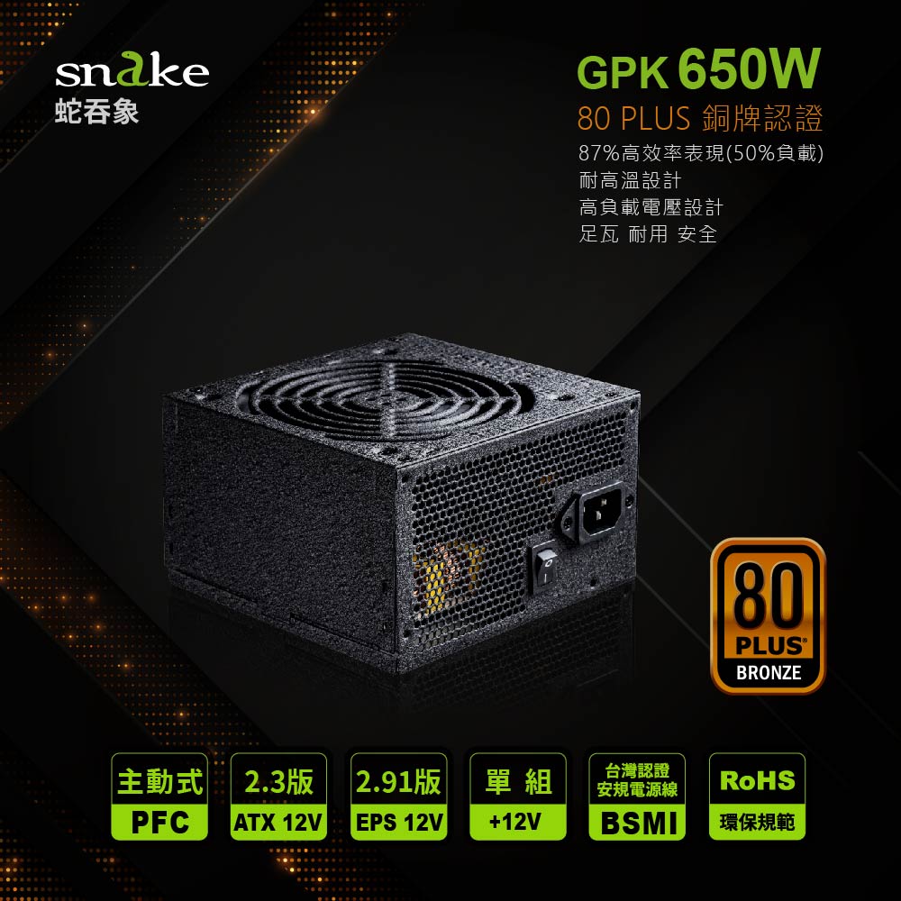 蛇吞象 SNAKE 80+銅牌 GPK650SP 雙8 電源供應器