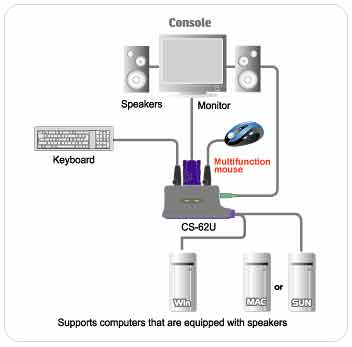 CS62U為整合6呎線材,設計十分輕巧,可從一組控制端控管兩台伺服器電腦主機。