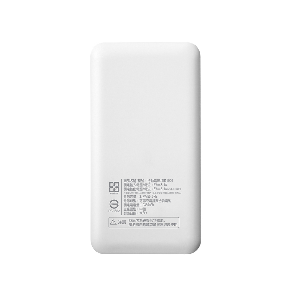 ◆包裝內容物:财 TB15000 行動電源x 1 财 Micro USB 充電傳輸線 x 1 ◆產地:中國
